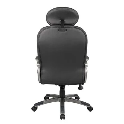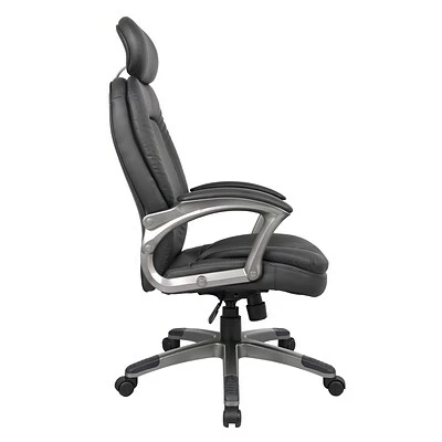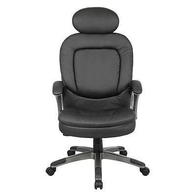 Our high back executive chair features a patented perforated pillow top design and is beautifully upholstered with impeccably soft, durable Caressoft upholstery. Additional features include a tasteful pewter finish, padded armrests, and comfortable cushions. Structurally, the chair has an upright locking position, pneumatic gas lift seat height adjustment, and adjustable tilt tension control. Of course, all of this is supported by a sturdy 27-inch nylon base that is propped up by five hooded double wheel casters.
