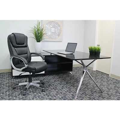 Make your time at the office even more comfortable with this stunningly modern design. Our high back NTR chair is beautifully upholstered with LeatherPlus, a combination of leather and polyurethane that promotes added softness and durability. Its elegant waterfall seat design prevents leg fatigue, while its ergonomic back design with integrated lumbar support ensures maximum comfort. All of this rests atop a 27-inch base with full swivel and five dual hooded casters. Perhaps best of all, no tools are required for assembly.