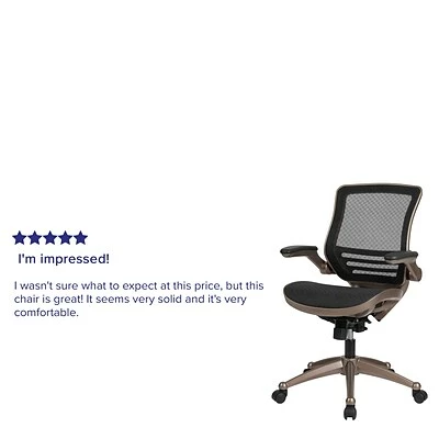 This office chair flawlessly blends form and function to help you through your day. The transparent, breathable mesh material allows air to circulate to keep you cool and more productive. This mesh office chair features a contoured backrest. The synchro tilt control allows this chair’s back and seat to recline at different rates, increasing the angle between your torso and thighs. The waterfall front seat edge removes pressure from the lower legs. Chair easily swivels 360 degrees. The pneumatic adjustment lever will allow you to adjust the seat to your desired height. Padded armrests take pressure off your shoulders and neck, and flip-up and out of the way. If you need to move from one work surface to another, the heavy duty nylon base and dual wheel casters will make it feel effortless. Spills clean up easily with a solvent based cleaner, no water required.