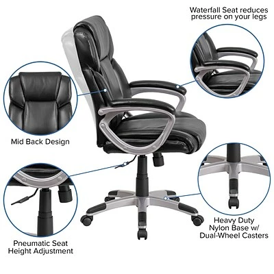 This executive leather chair has a tilt lock mechanism with tension control to increase or decrease the amount of force needed to rock or recline.
