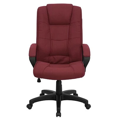 Sit comfortably at your desk in this Flash Furniture high-back executive office chair. Its burgundy upholstery lends a traditionally appealing look to your space, and its plush seat and back are thickly padded, so you can sink in and relax. Sturdy dual-wheel casters provide you with easy maneuverability, and adjustment controls allow you to adapt the chair to fit your body.