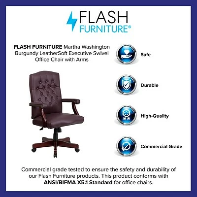 In addition to providing a professional look that’s sure to impress, this Flash Furniture Martha Washington high-back executive chair offers a comfortable place to sit whether you’re working late or performing your daily duties. High-density padding in the seat, back, and arms ensure its coziness, and its high back provides extra support throughout your workday. Adjustable Convenience