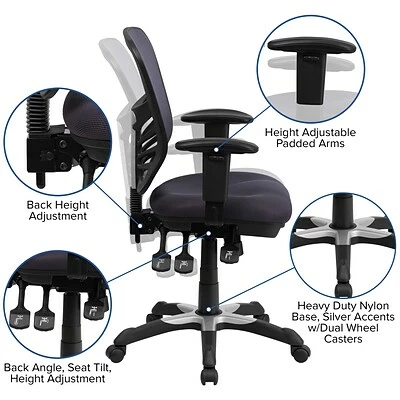 Get your work demands down to a minimum and produce your best work on this multifunctional swivel office chair. This chair comes fully loaded to help you take charge of your day. With a ventilated mesh back, you’ll have air circulating to your back giving you sweet relief during warm summer days. Make room for this modern beauty, upgrade everyone’s chair in the office, granting everyone the ability to have a customized seating experience. Standout features include: an adjustable back height knob; back angle paddle; tilt control paddle; curved back with substantial lumbar support; contour padded swivel seat; adjustable height arms provide relief to your neck and shoulders. Get a supportive ergonomic chair that can keep up with long 8 to 10 hour shifts with ease. This chair is so comfortable it can also be used as a gaming chair while you revel in an intense game against online players.