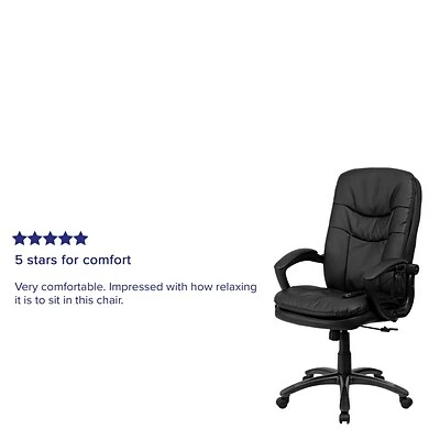 Relieve everyday muscle stress while you work sitting in this Flash Furniture massaging leather executive office chair. The built-in massager helps relax tense lumbar and thigh muscles and includes a handy remote control, which stores conveniently in the chair’s side pocket. This well-built chair is designed to hold up to commercial use in a busy office environment, but it’s also a wonderful choice for your home office.