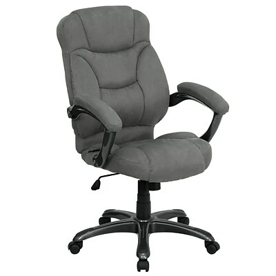Work efficiently in the Flash Furniture gray office chair, as it boasts overstuffed padding and soft microfiber upholstery for optimal comfort. Padded nylon-loop arms are reinforced with a titanium finish for long-term wear, and comfortable built-in lumbar support and tilt-tension controls provide a customized fit. Adjust the seat, back and armrest height according to individual needs, and enjoy better circulation throughout long work sessions thanks to the waterfall seat design.