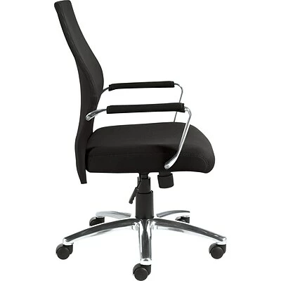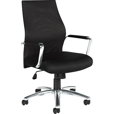 This Global black high-back manager’s chair features a full mesh back that improves air circulation while supporting the head, neck, shoulders and back. Mesh fabric on the padded seat delivers additional airflow that keeps users cooler in hot work areas. With padded armrests for forearm support, this Global manager’s office chair provides comfortable seating for up to 8 hours.