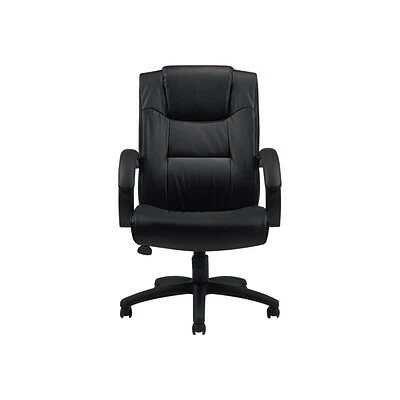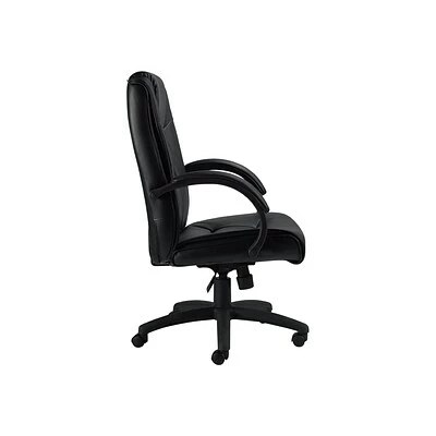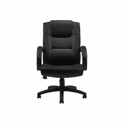 Accomplish the day’s business with this Offices To Go executive office chair featuring an integral headrest. Soft Luxhide upholstery with mock leather trim and padded armrests project an executive look while ensuring support for your back and arms, while the integrated headrest lets you lean back in comfort. This versatile chair also has a single-position tilt lock with tilt-tension adjustment and pneumatic seat height adjustment to adapt to your individual needs. The wide scuff-resistant base facilitates safe, easy pivoting from task to task while looking good even after heavy use, while the twin-wheel carpet casters on the Offices To Go executive office chair ensure nimble movement between workstations.