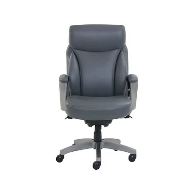 Upholstered in soft gray bonded leather
