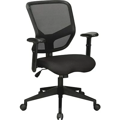 Black, five-star nylon base is equipped with smooth-rolling casters for easy mobility