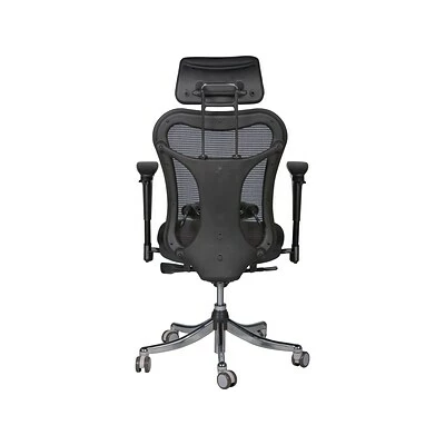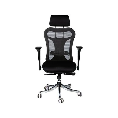 Provide whole-body comfort for marathon work sessions with this MooreCo Ergo Ex ergonomic executive chair. A padded headrest provides extra support for your head, neck, and shoulders, while the breathable mesh back lets air circulate freely as you work to keep you cool. The adjustable-height armrests swivel back and forth as well as from side to side, providing greater freedom of movement. Adjustable lumbar support gives your back a break without the need for an extra pillow or cushion. Use the customizable seat depth and height to find the perfect configuration for your body. With a sleek, curved five-star base and rolling casters, this MooreCo Ergo Ex ergonomic executive chair ensures effortless movement throughout your office.