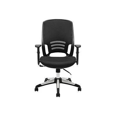 Bring a bold, contemporary look to your corner office with this Offices To Go high-back manager’s chair. Sleek, angular lines and polished chrome accents add a unique touch to your workspace, while the contoured seat and seat back cradle your frame for all-day comfort. With a breathable woven mesh back, this desk chair keeps you cooler while you negotiate contracts and field customer calls. Use the pneumatic seat height adjustment lever to tailor this chair’s setup to match your personal preferences and let the synchro-tilt mechanism, tilt tension adjustment and tilt lock help you recline back. With a waterfall seat design, this Offices To Go high-back manager’s chair promotes better circulation in your lower body.