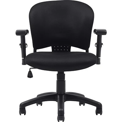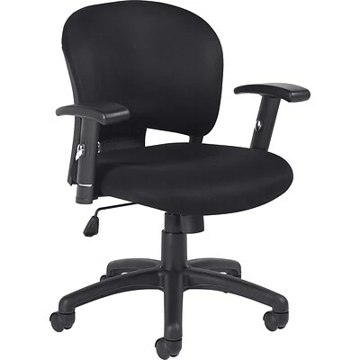 This Global bonded black executive chair features a modern design that stands out as professional, attractive and sleek. Its soft bonded leather upholstery is comfortable against the skin and durable enough to last. This Global luxhide high-back executi ve chair is features adjustable seat height and tilt tension for all-day comfort.