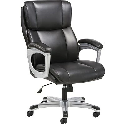 The 3-Fifteen brings executive styling and exceptional comfort into any space within your office. Plush cushions offer extra padding on the seat, back and arms, which are covered in smooth Black bonded leather for an upscale look. Easily adjust the seat height to fit your preference, and relax comfortably when reclining thanks to the tilt control mechanism. Move anywhere in your work space with 360-swivel and durable casters. This chair meets or exceeds industry standards for safety and durability, and is backed by a limited 3-year warranty.
