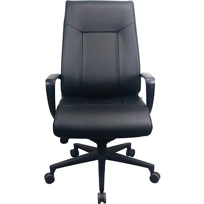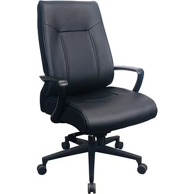 Kick back in this executive chair featuring sleek lines and a Tempur-Pedic design that maximizes comfort. This office chair’s arms and high-back design deliver reliable support for improved back alignment, while a built-in knee tilt mechanism helps improve circulation through a long work day. To complement its modern design, this executive chair features old-fashioned comforts such as generous seat and back padding and sumptuously soft bonded leather upholstery. With its sturdy base and five dual-wheel casters, this versatile Tempur-Pedic office chair is suitable for nearly any conference room or contemporary office space.