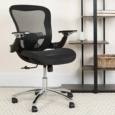 Mesh office chairs can keep you more productive throughout your work day with its comfort and ventilated design. This chair features transparent, breathable mesh material that allows air to circulate. This chair also features a height adjustable lumbar support mechanism. A mid-back office chair offers support to the mid-to-upper back region. This chair is ideal for anyone who does a great deal of typing throughout the day and needs good back support. The synchro tilt control allows the chair’s back an d seat to recline at different rates, increasing the angle between your torso and thighs. The waterfall front seat edge removes pressure from the lower legs and improves circulation. Chair easily swivels 360 degrees to get the maximum use of your worksp ace without strain. The pneumatic adjustment lever will allow you to easily adjust the seat to your desired height. The flip-up arms are great for users who like the option of an armless chair without the hassle of detaching them.