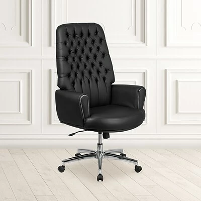 High Back Traditional Tufted Leather Executive Swivel Chair with Arms