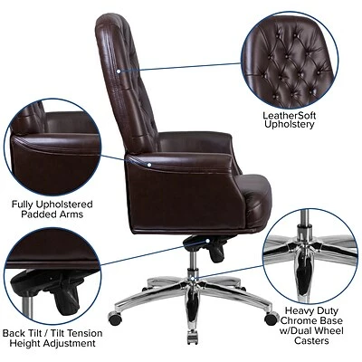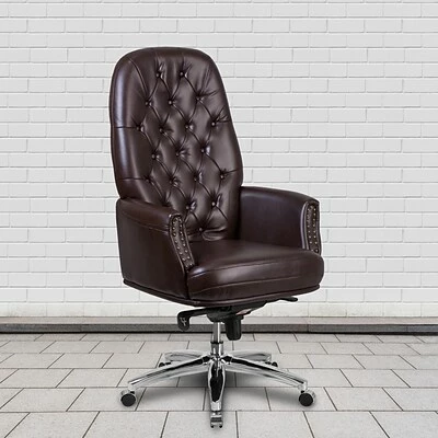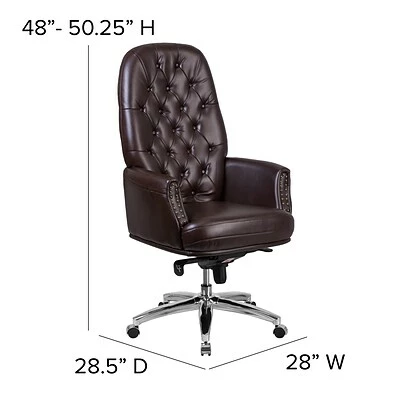 High Back Traditional Tufted Leather Multifunction Executive Swivel Chair with Arms
