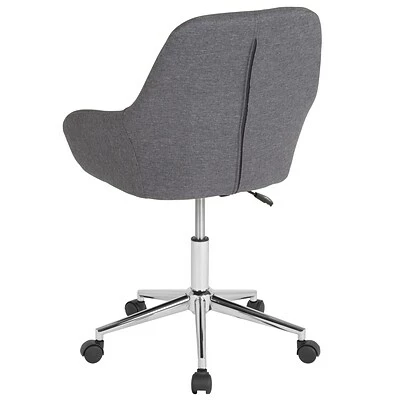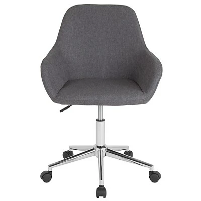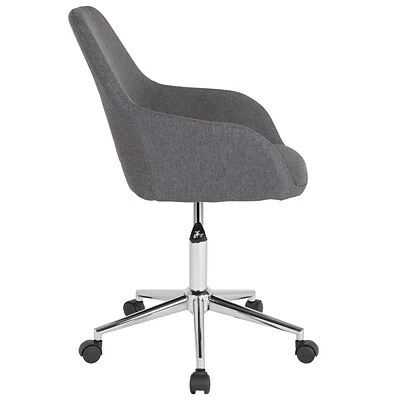 Reminiscent of an earlier time, the classic style of this bucket type task chair will always be popular. This chair boasts stylish integrated flared arms and dark gray fabric upholstery. This chair is ideal for those who spend the bulk of their day seated because of the mid back support that it offers to the mid to upper back region. Chair rotates 360 degrees to provide easy access to all of your work surfaces. A pneumatic seat height adjustment lever lets you easily position the chair at a height that is most comfortable for you. The chrome base provides a modern finish to this sophisticated versatile home or office chair. This retro-modern office chair is a great choice to complete the look in any office, reception, conference room or home office.