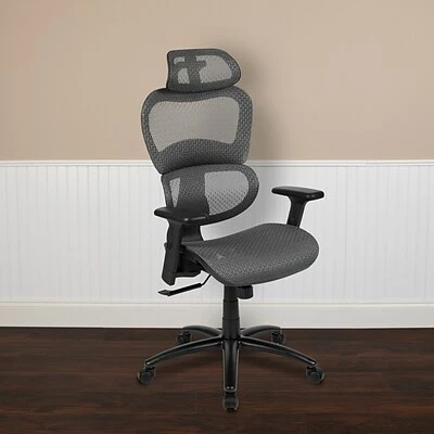 Transform your basic office chair by replacing it with this ergonomic mesh office chair brimming with comfort. You’ll stay supported by the deep curved seat and curved lumbar. The pivot headrest can be adjusted in height incrementally. Working in an office environment can take a toll on your posture if not properly supported leading to poor productivity. What makes this office chair unique is the synchro-tilt where the back and seat recline at a 2-to-1 ratio respectively, keeping the seat closer to the floor as you recline. The chair locks in 3 positions to lock in your reclined and working positions, adjust the rocking motion by turning the knob underneath the seat. The mesh back swivel ergonomic task office chair will exceed your needs in comfort and style. With functions to get you through any task you’ll enjoy this chair as your home office chair or professional office chair.