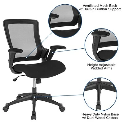 Welcome comfort to your home office with this Mid-Back Black Mesh Executive Swivel with Molded Foam Seat and Adjustable Armrests. The transparent mesh back allows air to circulate, keeping you cool no matter how high the pressure gets. Built-in lumbar support and a comfort molded seat will keep you focused and ticking off your tasks. The waterfall front seat edge removes pressure from the lower legs and improves circulation. Turn the tilt tension adjustment knob to increase or decrease the amount of force needed to rock or recline. Lock the seat in place with the tilt lock mechanism. Chair rotates 360 degrees to provide easy access to a greater range of area. A pneumatic seat height adjustment lever lets you easily position the chair at a height that is most comfortable for you. This office chair is equipped with adjustable arms to comfortably support your arms and shoulders. This quality mid-back office chair will add a functional, appealing seating choice for your home or office.