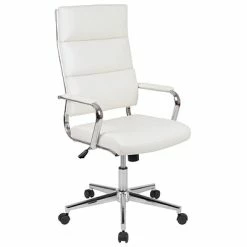 Bring your office into the new age with this stunning executive office chair. The panel back desk chair is easy on the eyes to bring instant value to your workspace. Impressive chrome arms with a padded layer provide support to your upper body while looking exquisite. Make a powerful impact in your conference room when taking meetings with clients and buyers with these high back conference chairs. Drape your jacket over the coat hanger bar to prevent from falling when getting in and out the chair. Adjust the chair to your desired height by utilizing the lever underneath the seat that also locks the chair in an upright position. When you want to lean back pull the lever out and use the knob to adjust the force that’ll be required to recline. Enjoy reliable support in this ergonomic office chair to support your while addressing customer concerns and day-to-day tasks.