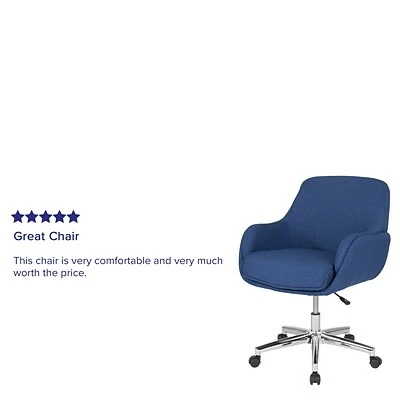 Are you ready for an exciting office chair that will put a little zip in your day? Work in comfort and style with this upholstered swivel office chair. Boasting a 4″ thick molded seat, this office desk chair will look fabulous in any decor. The mid-back design is ideal for supporting the mid to upper back region while the integrated arms relieve tension from the neck and shoulders. Raise and lower your seat height using the pneumatic seat height adjustment lever located under the seat. The 360 degree swivel function allows you to reach multiple work surfaces without strain and the waterfall seat alleviates pressure from your legs. Dual-wheel casters enable you to glide effortlessly from one task to the next. Shiny chrome adorns the pedestal base for a striking contrast and no need to worry about spills, this chair cleans up easily with water and a neutral detergent.