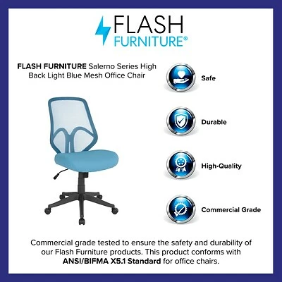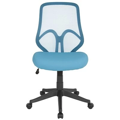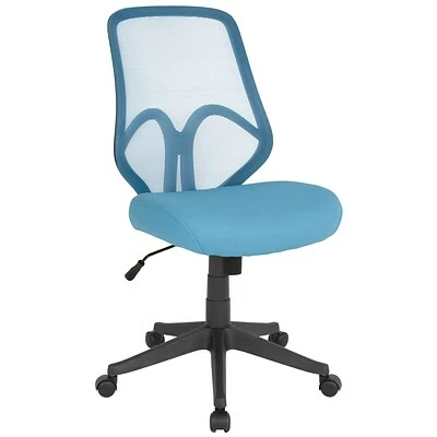 Breathe new life into your office, dorm or home office with this comfortable High Back Mesh Chair. The transparent mesh back allows air to circulate, keeping you cool no matter how high the pressure gets. The swivel seat is foam padded and has a waterfall front for leg comfort. Built-in lumbar support helps prevent back strain and muscle fatigue. Raise and lower the seat using the pneumatic seat height adjustment lever, conveniently located below the seat. The heavy-duty, nylon base with dual wheel casters makes it easy to roll across the floor. Whether you’re studying, browsing or on a tight deadline, this stylish chair will keep you cool and comfortable throughout your busy day.