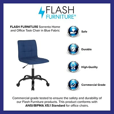 Armless chairs lend an upscale, designer feel to the conference or board room or your home office. The streamlined silhouette of this modern task chair allows more room for board members, guests or visitors while the armless design lets you roll further under a desk or table to get closer to your monitor or paperwork preventing back strain. Upholstered in durable fabric and boasting a tufted design, this chair features a low back design with a foam molded swivel seat and back. A pneumatic seat height adjustment lever lets you easily position the chair where you need it for the task at hand. This sturdy chair has a heavy duty base with dual wheel casters for effortless movement between work surfaces. This designer armless task chair is a great choice for your reception desk, conference room or home office.
