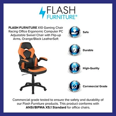 Black with orange inserts seat with breathable mesh back for comfort