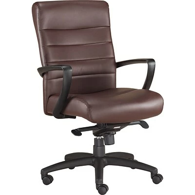 The epitome of style, comfort and durability, this black leather series features oversized molded foam cushions, leather padded armrests, waterfall seat with pneumatic height adjustment, knee tilt mechanism, tilt tension control and steel substructure for enhanced functionality and strength