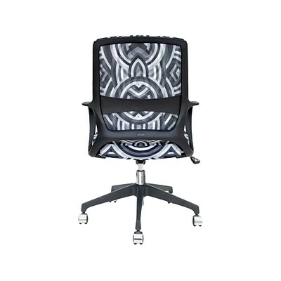 Features a patented ESC fabric upholstery in a Grayscale Echo design and a black base with silver-tone accents