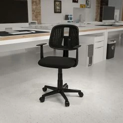 Surround yourself in plush comfort with this Kelburne office chair. The soft Luxura upholstery offers an inviting texture, while the plush padding delivers a more comfortable seating experience. Padded fixed loop arms offer added support for your upper body, so you can rest easy in between email blasts and conference calls. Use the tilt-tension control and seat height adjustment lever to customize the setup to meet your personal preferences. This desk chair features built-in lumbar support and an integrated headrest to cushion your body while you work. With a sturdy five-star base, rolling casters and swivel seat, this Kelburne office chair makes it easy to move from one corner of your office to the other.