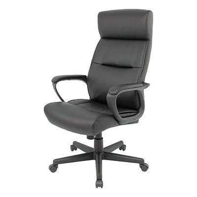 Create a more professional work environment with this Staples Rutherford managers chair. The soft Luxura upholstery offers an inviting texture, while also delivering a more comfortable seating experience. Padded fixed loop arms offer added support for your upper body, so you can rest easy in between email blasts and conference calls. With pneumatic seat height and tilt adjustment options, the sturdy chair provides convenient customization options to meet your needs.