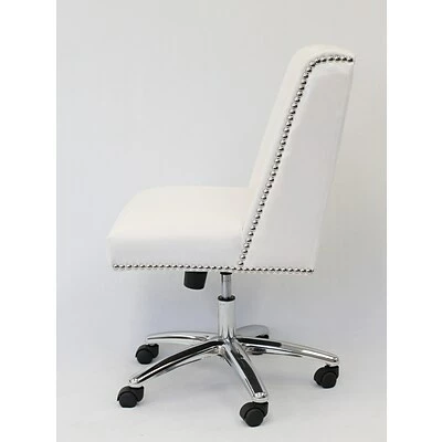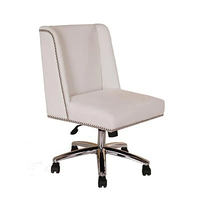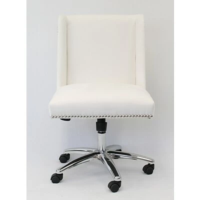 This White Accent Chair is beautifully upholstered in Velvet fabric. It features a sleek, nail head trim. It has an upright locking position feature, providing comfortable back support. The pneumatic adjustable gas lift allows for easy seat height adjustment, to help you find the personalized sitting style that suits you and your work environment. The large 27″ Chrome base provides added stability to the chair. The hooded double wheel casters make it easy to move and shift directions.