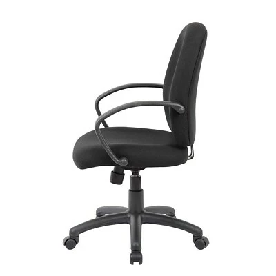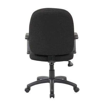 This Black Ergonomic Budget Task Chair is upholstered in Black tweed fabric. Its fixed arms make for comfortable and natural armrests. It has an upright locking position feature, providing comfortable back support. The pneumatic adjustable gas lift allows for easy seat height adjustment, to help you find the personalized sitting style that suits you and your work environment. The large 27-inch black nylon base provides added stability to the chair. The hooded double wheel casters make it easy to move and shift directions.