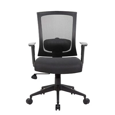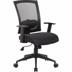 Our mesh back task chair provides comfort and ergonomic support for any office environment. It features ratchet back height adjustment, two adjustable height armrests, a pneumatic gas lift seat for easy height adjustment, and adjustable tilt tension control. Its versatility is augmented by a grey mesh back with lumbar support and a breathable grey mesh fabric seat. All of this is supported by a 25โ black nylon high crown base and five hooded double wheel casters.
