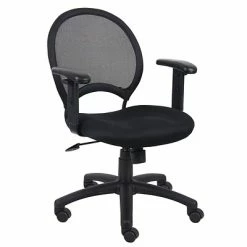 The Budget Mesh Back Task Chair is a patented design that features an open mesh back designed to prevent body heat and moisture build up. It has a solid metal back frame with ballistic nylon wrap that enhance its stability. The breathable mesh fabric seat with padding will keep you cool and comfortable during extended periods of work. The adjustable tilt tension control allows you to customize the optimal angle at which you sit. It has an upright locking position feature, providing comfortable back support. The pneumatic adjustable gas lift allows for easy seat height adjustment, to help you find the personalized sitting style that suits you and your work environment. The 25-inch black nylon base provides added stability to the chair. The hooded double wheel casters make it easy to move and shift directions. The height adjustable arms provide comfortable and versatile arm rests that can suit your personal preferences.
