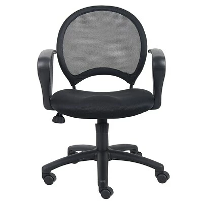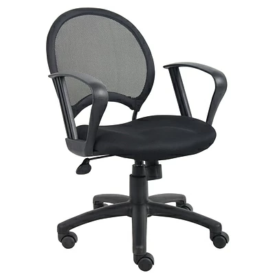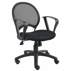 The Budget Mesh Back Task Chair is a patented design that features an open mesh back designed to prevent body heat and moisture build up. It has a solid metal back frame with ballistic nylon wrap that enhance its stability. The breathable mesh fabric seat with padding will keep you cool and comfortable during extended periods of work. The adjustable tilt tension control allows you to customize the optimal angle at which you sit. It has an upright locking position feature, providing comfortable back support. The pneumatic adjustable gas lift allows for easy seat height adjustment, to help you find the personalized sitting style that suits you and your work environment. The 25-inch black nylon base provides added stability to the chair. The hooded double wheel casters make it easy to move and shift directions. The Loop Arms make for comfortable and natural arm rests.