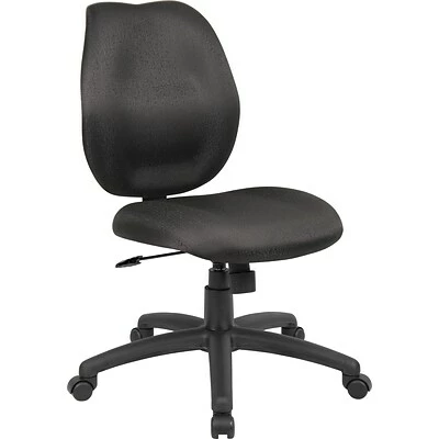 This beautiful chair is as unique as it gets with its sculptured seat made from molded foam with perfect contours to fit the shape of your body. With its ratchet back height adjustment, this mid-back style chair provides excellent lumbar support. Commercial grade fabric has been used for its upholstery. The large 27-inch nylon base provides immense stability while the pneumatic gas lift provides instant height adjustment of the seat.