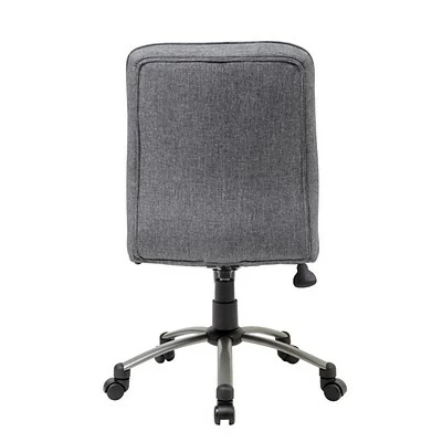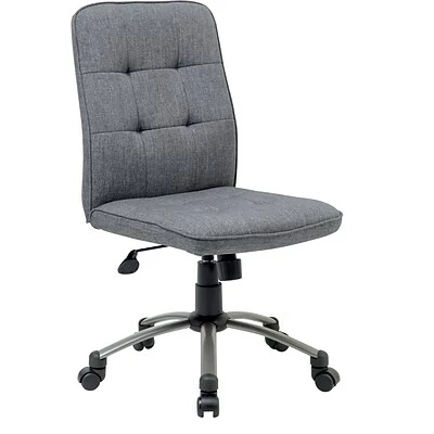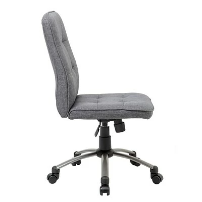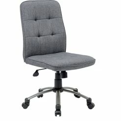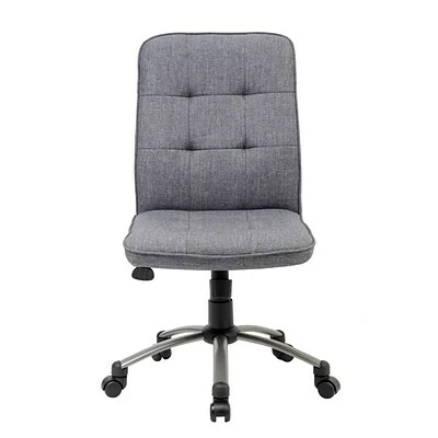 The modern office chair in slate gray is made with commercial grade linen and features a 27 inch chair base that is designed with fancy high crown chrome and has 2 inch nylon dual wheel castors for smooth rolling. The chair has a 275 lbs. weight limit and provides a pneumatic gas lift mechanism for adjustable height options, making this great for most any desk or drafting table. In addition to the adjustable height the chair also offers tilt tension, Spring Tilt and an upright lock.