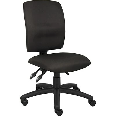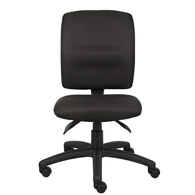 The Multi-Function Budget Task Chair is upholstered in Black Crepe fabric. It comes with an adjustable height back that can be moved to the perfect lumbar support position. The seat tilt lock allows the seat to be locked throughout the tilt range. The back angle lock allows the back to be locked throughout the angle range for perfect back support. It has a pneumatic gas lift seat height adjustment, allowing for versatile adjustment of the seat height to suit your comfort and work environment. The large 27-inch black nylon base provides added stability to the chair. The hooded double wheel casters make it easy to move and shift directions.