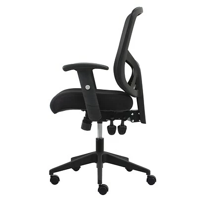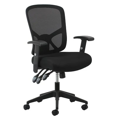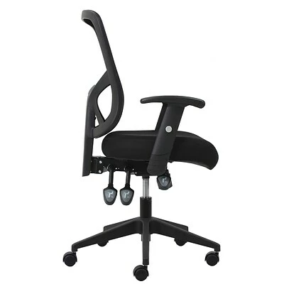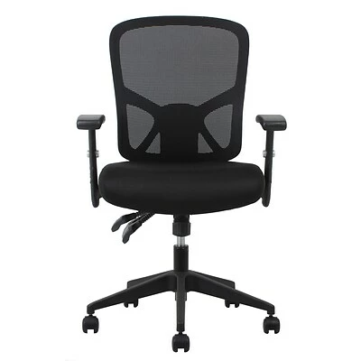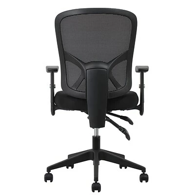 Essentials by OFM 3-Paddle Ergonomic High-Back Mesh Task Chair with arms and lumbar support has an upholstered fabric seat with mesh back in back. This chair features ergonomic adjustable seat height, adaptable ratcheting back, asynchronous control.