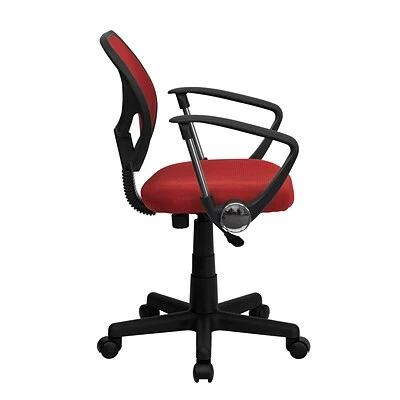 Work comfortably with this Flash Furniture fabric mid-back task chair with capped arms. This seating solution features red fabric mesh upholstery that is both durable and stylish. Polyurethane capped arms and a pneumatic seat-height adjustment lever provide comfort, and a heavy-duty nylon base with dual-wheel carpet casters ensures mobility and strength for almost any type of office setting.