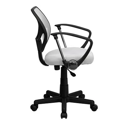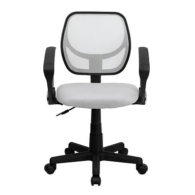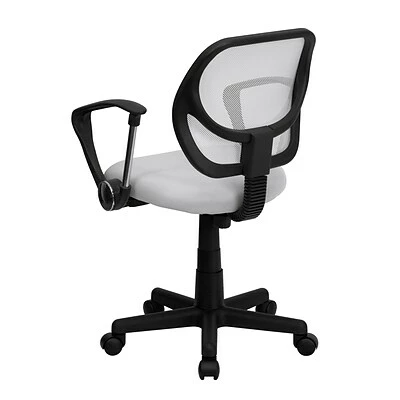 The mesh backrest on the Flash Furniture fabric mid-back task chair promotes air flow, so you can stay cool while looking professional on the job. The padded seat and capped arms support your body and help prevent muscle aches. With its sturdy base and rolling casters, this chair enables you to move freely around your workspace.