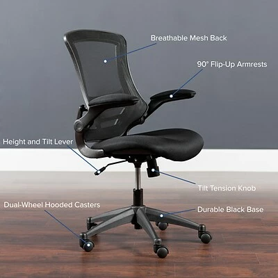 Task office chair with flip-up arms provides support to the hard-working professionals in office