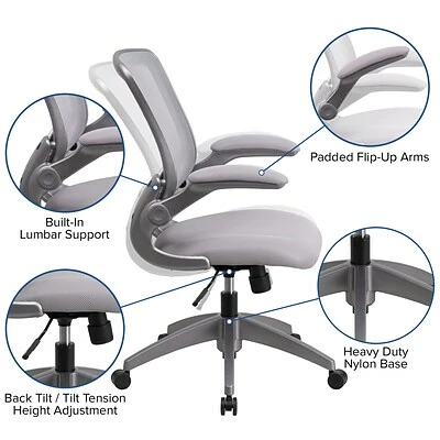 Mesh office chairs can keep you more productive throughout your work day with its comfort and ventilated design. The breathable mesh material allows air to circulate to keep you cool while sitting. The mid-back design offers support to the mid-to-upper back region. This chair features flip-up arms that are perfect for getting the chair under desks of all heights. The waterfall front seat edge removes pressure from the lower legs and improves circulation. Chair easily swivels 360 degrees to get the maximum use of your workspace without strain. The pneumatic adjustment lever will allow you to easily adjust the seat to your desired height. This comfortably designed computer chair will make it a great option for your home or office space.