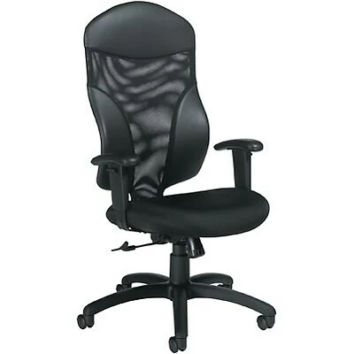 Mesh fabric and upholstered panels on back