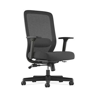 The padded, upholstered seat and mesh back give this chair an upscale feel at a compelling price. Seat upholstery color is Black and back mesh color is Black.