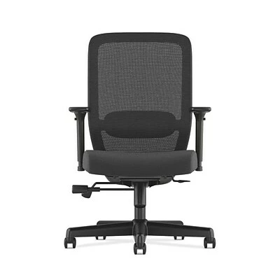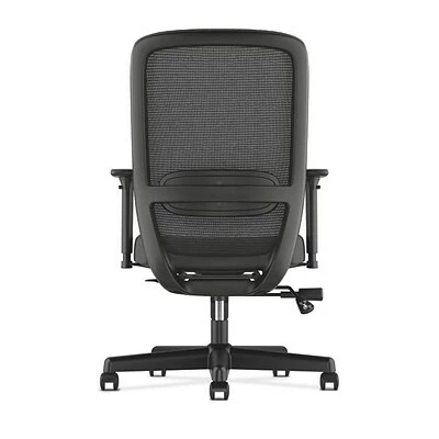 Mesh back with adjustable lumbar support and adjustable arms provides outstanding support for all-day task work