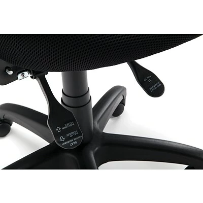 This OFM Comfort series black mesh fabric task chair boasts a molded seat and mesh back that provide users with support while preventing painful pressure points. A built-in lumbar curve combines with a back-height adjustment feature to encourage workers of various heights to adopt proper posture, reducing the potential for discomfort.